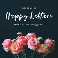 Let the brush roll and see how the font Happy Letters gives a delightful touch to your art imagery with natural and stylish lines. This font brings a casual yet organic feel with rough edges and realistic brush textures. Perfect for printed cards, invitations, wedding imagery, thank you cards, book titles, restaurant menus, as well as digital applications such as social media branding projects, newsletters, eLetters, eCourses, eBooks headlines, among many more.