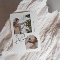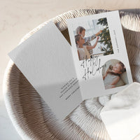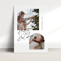 Bring minimalist elegance to your holiday greetings with our Minimalist Modern Photo Collage Christmas Card Template. Featuring a sleek design with sophisticated script spelling 'Happy Holidays', this template provides a crisp, clean backdrop perfect for showcasing your family photos. Easily customizable via Canva, it allows you to create a simple yet stylish holiday message.