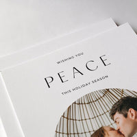 Spread the warmth of your family's love this holiday season with our personalized Christmas cards, featuring your own cherished photo! These custom greeting cards showcase a sweet family moment, embracing the spirit of peace and joy, perfect for sending heartfelt holiday wishes to friends and family.